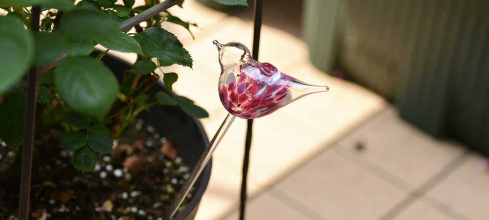 土が乾くとガラス棒の先端より水分がにじみ出ていくので、水をやりすぎることがなく、一度入れると数日間保つため、家を空けなければならない時などに非常に重宝します。