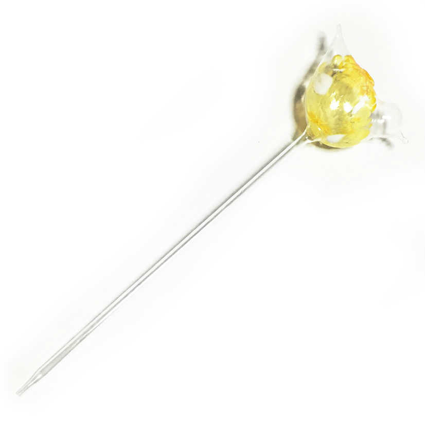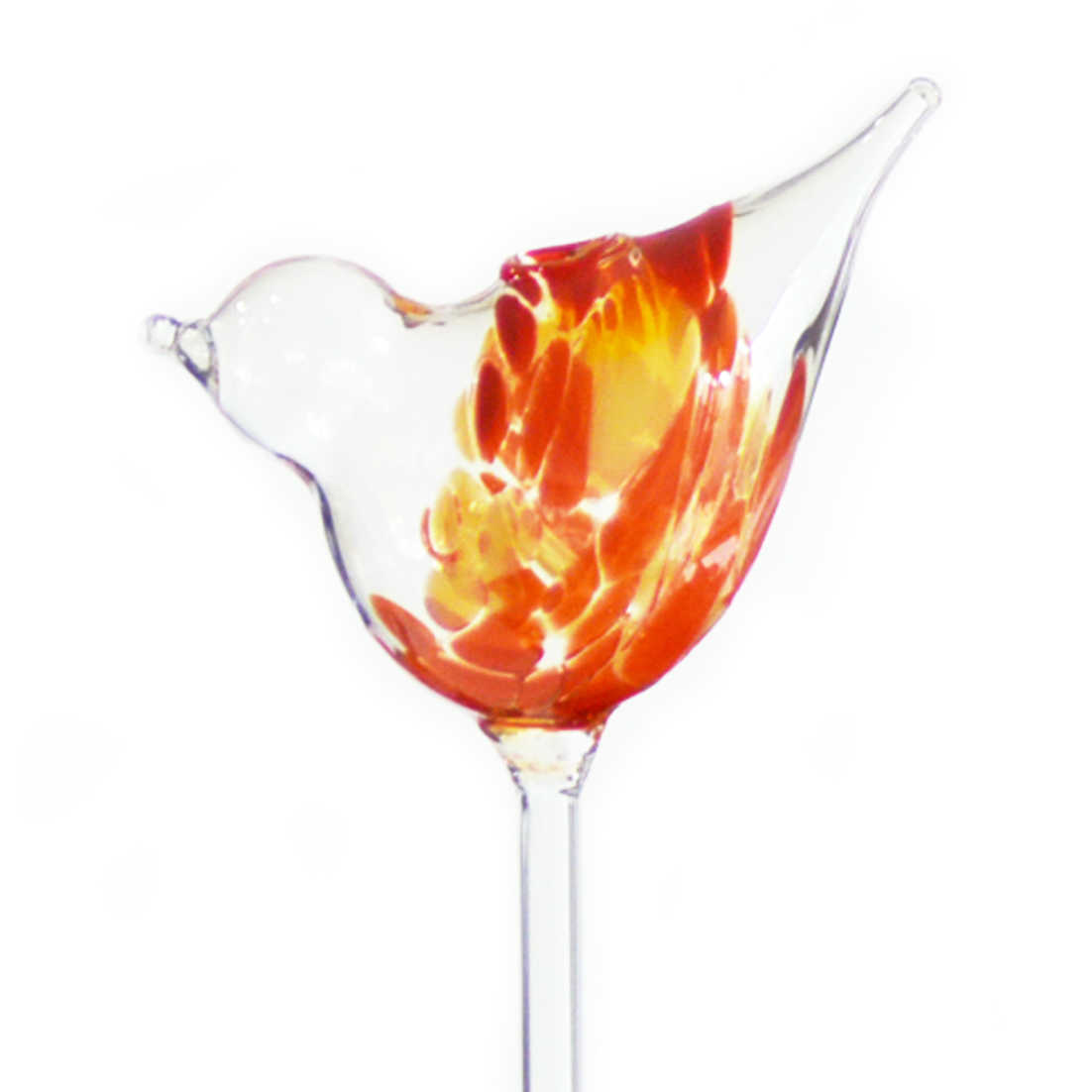 体の鮮やかな色は、鳥の形を作った後に色のついたガラス片をまぶした、バーナーで溶かすことで不均一な美しい模様となります。