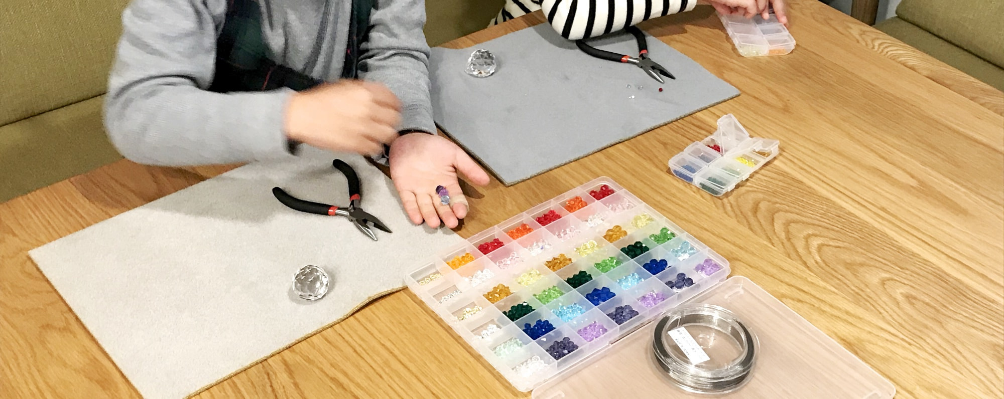 サンキャッチャーやアクセサリーなどのワークショップを行うための部材(クリスタルパーツ 、メタルチャーム、副資材、工具)のご提案をしています。