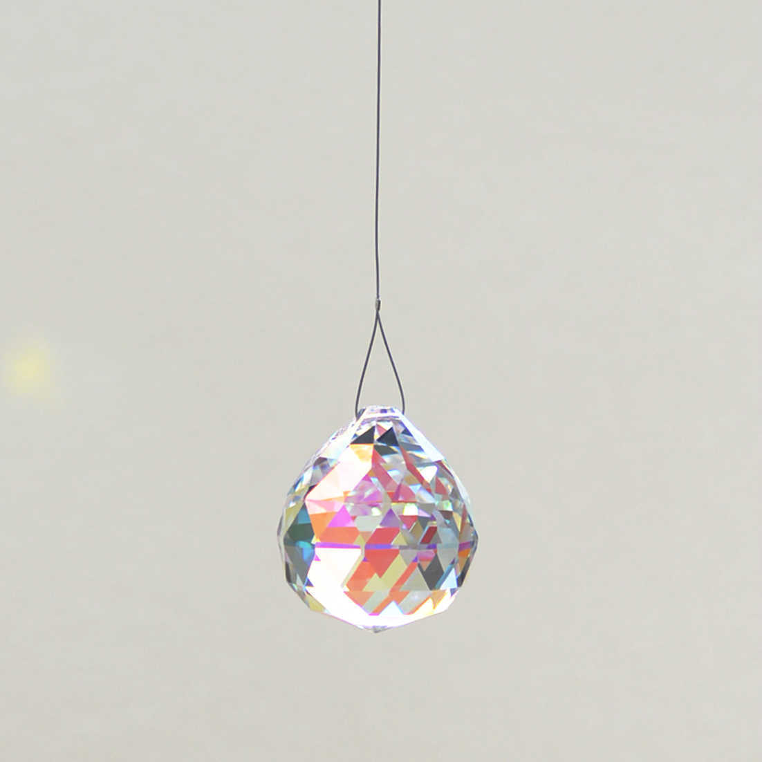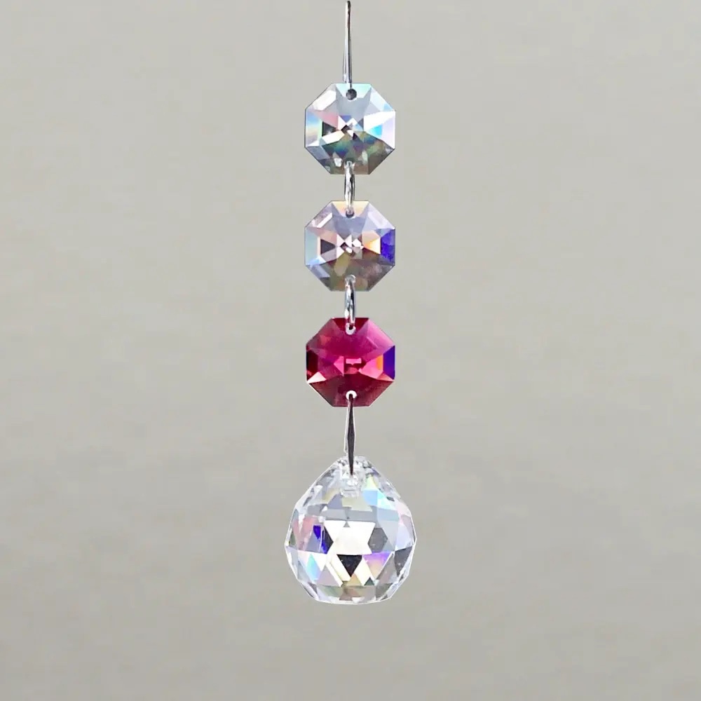 クリスタル製のガラス玉を使いストラップのように作成したものを窓辺など太陽の光が直接当たる場所にぶら下げると、クリスタルで乱反射した光が虹の粒となって部屋に入ってきます。