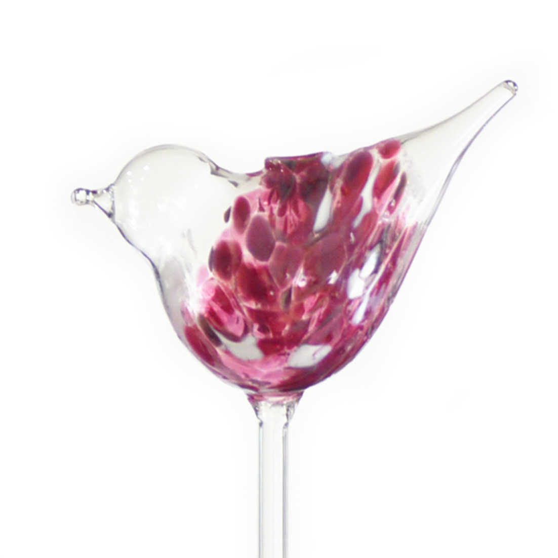体の鮮やかな色は、鳥の形を作った後に色のついたガラス片をまぶした、バーナーで溶かすことで不均一な美しい模様となります。